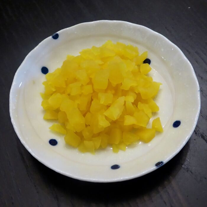 沢庵は歯ごたえが残るように粗みじん切りにしてきます。