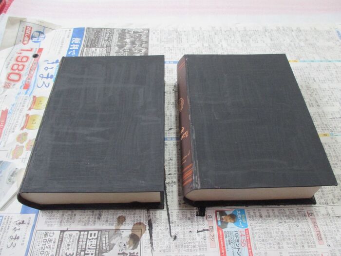 でもこのままでは、右側のブックスタンドが本に挟まらなくて、むき出しになっているので、右側のボックスを切ってスタンドを挟めるようにします。