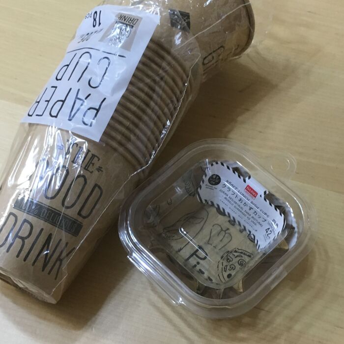 ダイソーのおかずカップとセリアの紙コップがなんだかセットのようによく合うんです♪( ´▽`)