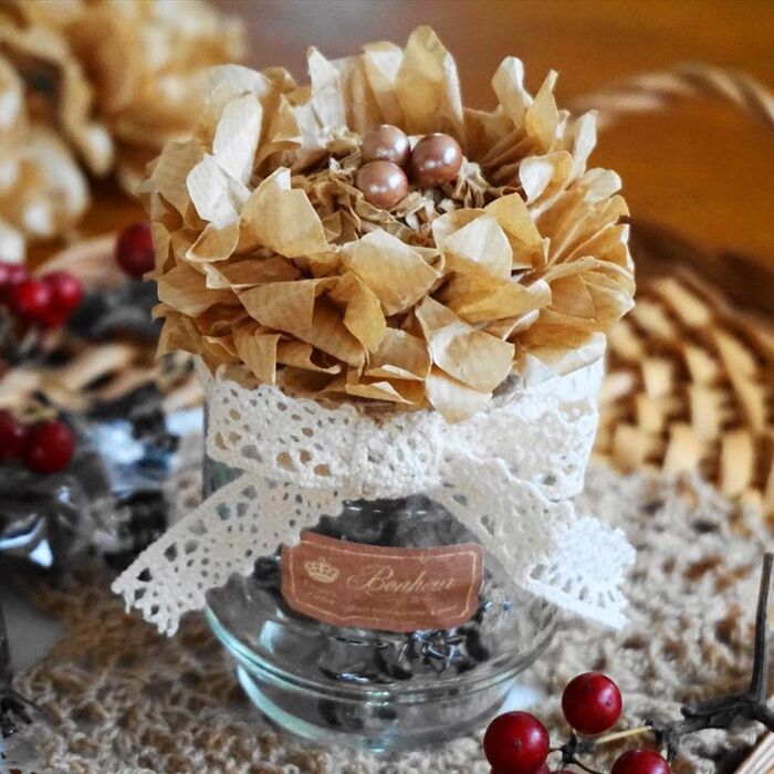 華やかに見えますが意外に簡単でコスパ的にもかなりいいです♪お花もクラフト紙でできているので多少つぶれても大丈夫です。