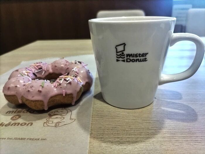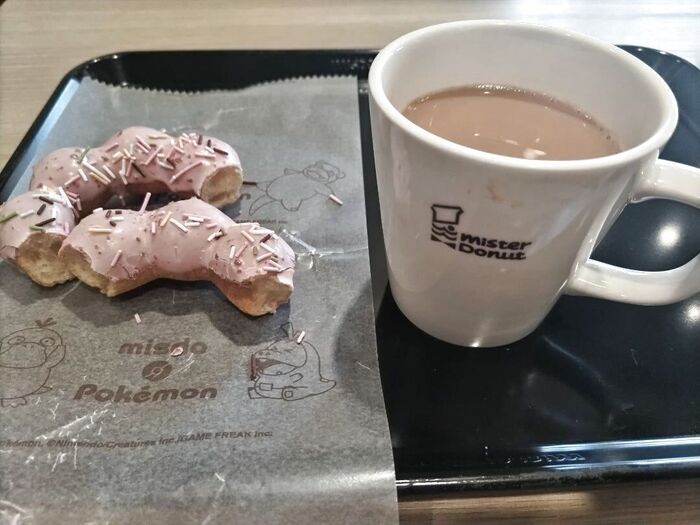 極寒の寒さのなか自転車こいで、何か温かい物が欲しい!そして甘いものも食べたいなぁ…と、ポケモンのクリスマスドーナツの看板に惹かれて、ミスタードーナツへ行きました!!