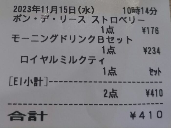 私は、ポン・デ・リースストロベリー、ロイヤルミルクティ(おかわり自由)を選びました。