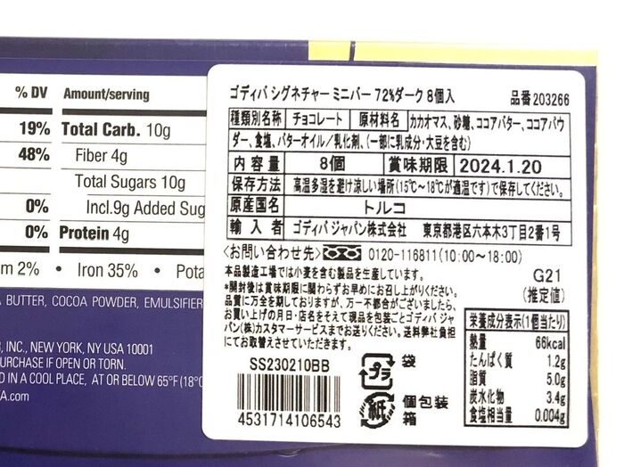 ゴディバジャパン株式会社が輸入者のこちらの商品。ゴディバの公式ホームページからは買えない?商品の掲載がないものでした。
