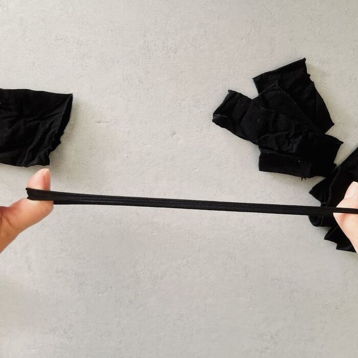 レギンスなら裾、ストッキングならつま先を切り落とします。(使いません)