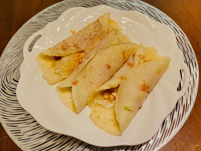 ⑤包みます。お好みでタバスコをパラパラします。