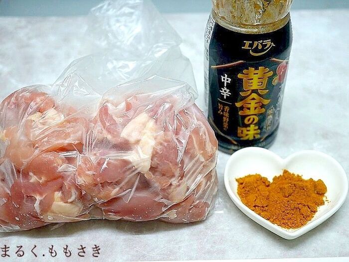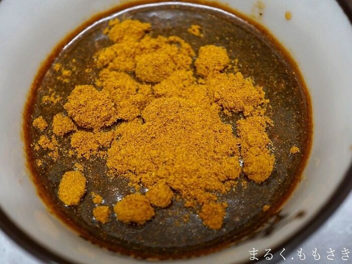 ②焼肉のたれにカレー粉を入れ混ぜる。