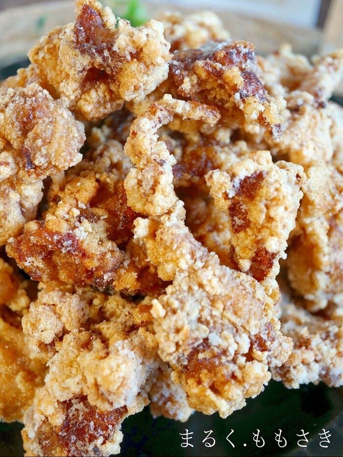 唐揚げを山に盛り~真上から眺めるこれぞザっ唐揚げ!