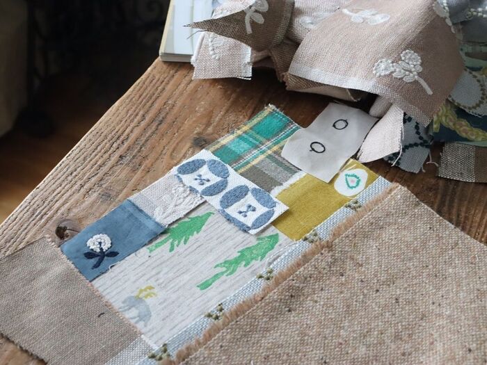 特に柄と柄を合わせるのは難易度も上がってきますので、手持ちの無地の生地を加えてみるのもお勧めです。一旦その場を離れたり、一日開けてから続きを進めると意外な発見があったりして面白いですよ。