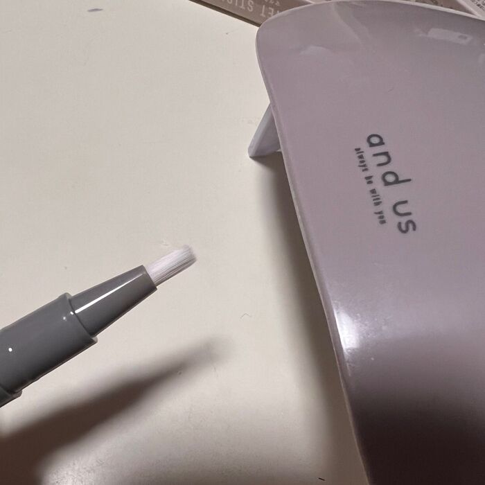 ペンタイプの先はブラシになっていて、最初は20回ほど回して液体が出てくるのを待ちます。