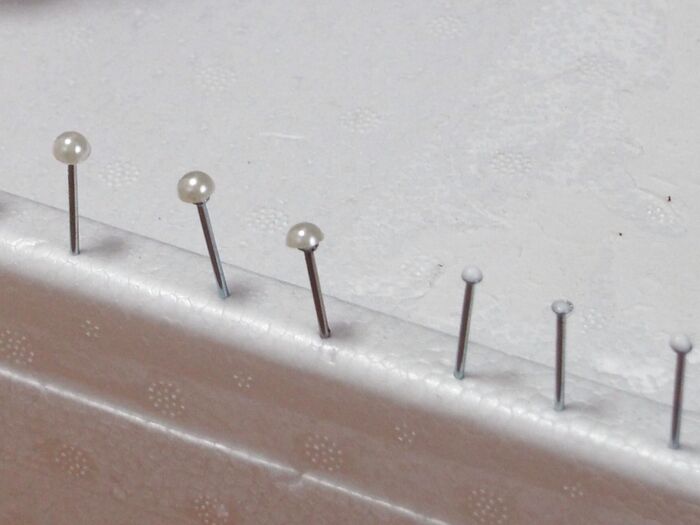 ピンクに着色したシダーローズの隙間に、差し込んで空間を埋めます。