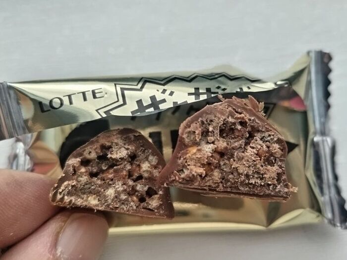 チョコレートの中には、モルトパフ・ココアビスケットクランチ・プレッツェル・隠し味に塩が使われています。食感が楽しいチョコレートです。