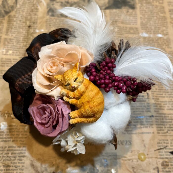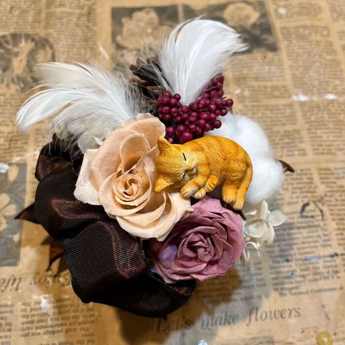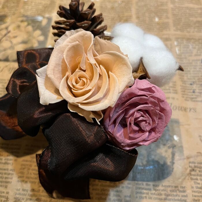 花材は、プリザーブドフラワーでなくても、お好みのもので作れます。