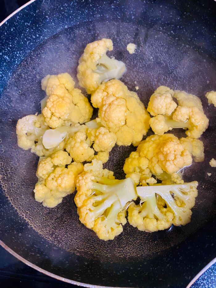 5.包丁でカリフラワーをカットしてからよく洗います。