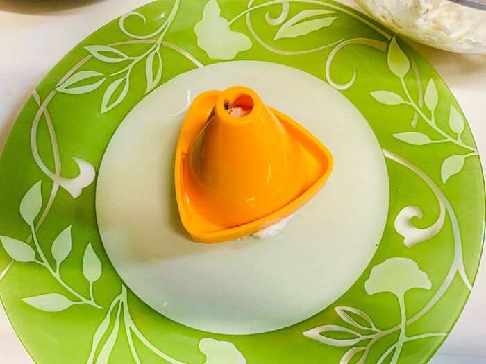 7.3を三角形のものに入れて型取りをします。(ツリーを意識しました。^ ^)