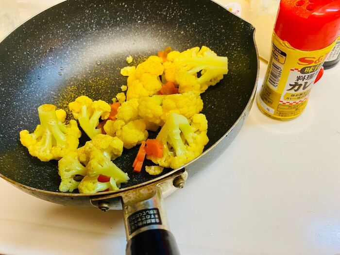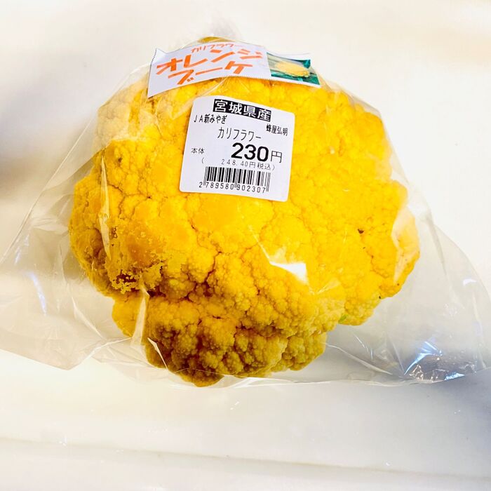 4.オレンジブーケというカリフラワーです。とっても綺麗なカリフラワーなので、クリスマスにふさわしいかなと思い使ってみますね。
