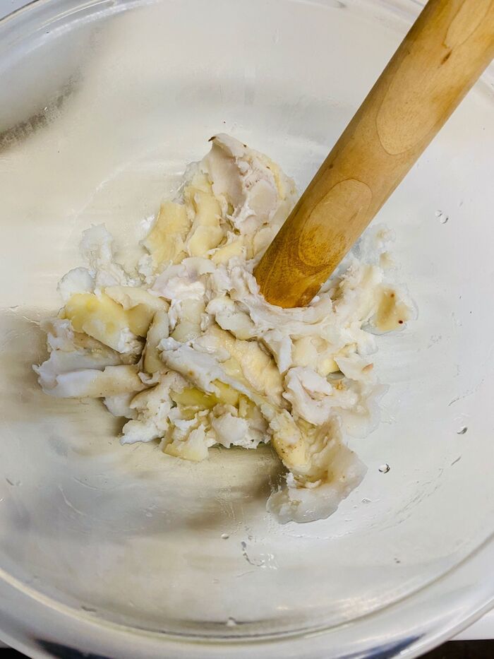 里芋をマッシュしてサラダを作るのは初めてですが、口当たりも滑らかでとっても美味しいです。