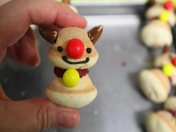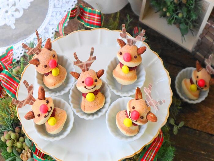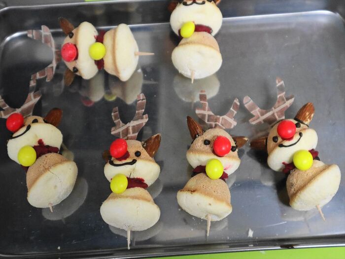 爪楊枝の先が少し出るので、このままケーキやスイーツにトナカイさんピックとしてデコレーションしやすくなります。邪魔な場合はハサミでカットしてくださいね。