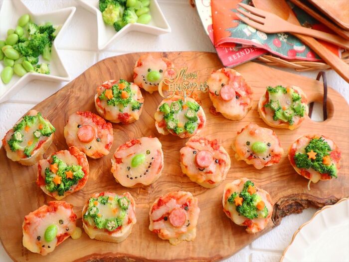 ・スノーマン…真ん中に枝豆を乗せる。目は海苔、口は黒ごま。