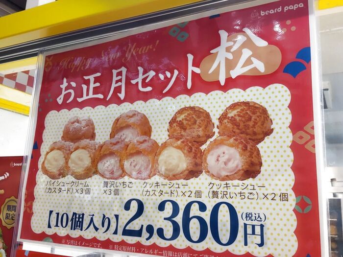 苺の方が、期間限定品のシュークリームだそう→2024年1月1日(月)〜2月29日(木) 予定。