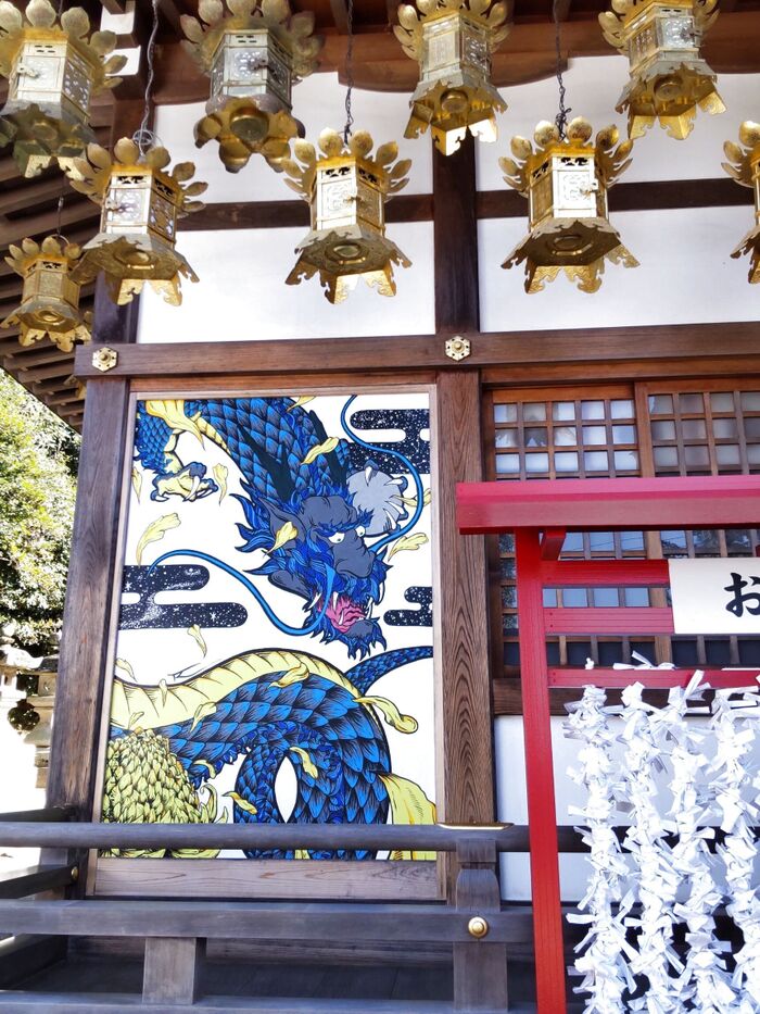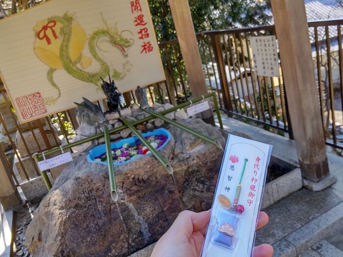 まず、ケーキに雲のようにホイップクリームを描いていき、その上に緑色の和菓子を4つ使い、龍になるように並べていきます。顔は、羊羹をハサミでカットして作ります。