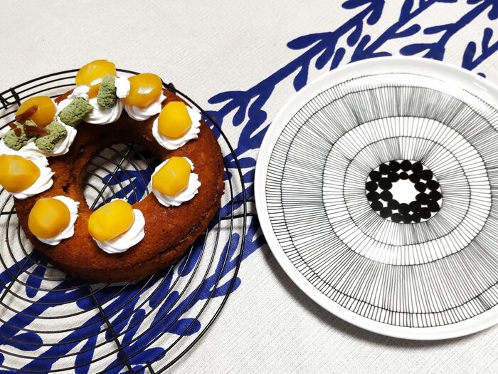 我が家でよく焼いて頂く、焼きっぱなしのケーキ(18cmリング型)にもぴったりですよ。