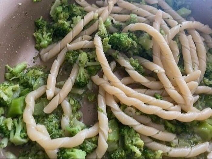 パスタと大きめの小房に分けたブロッコリーを入れ茹でる。