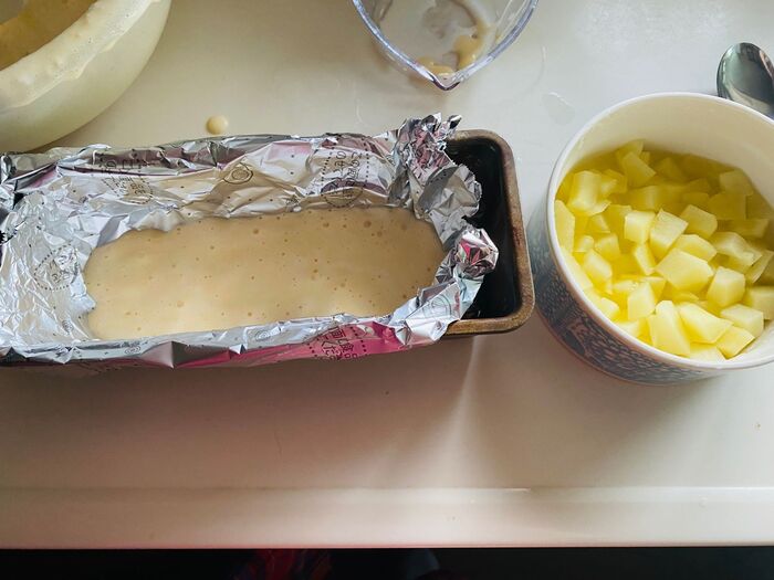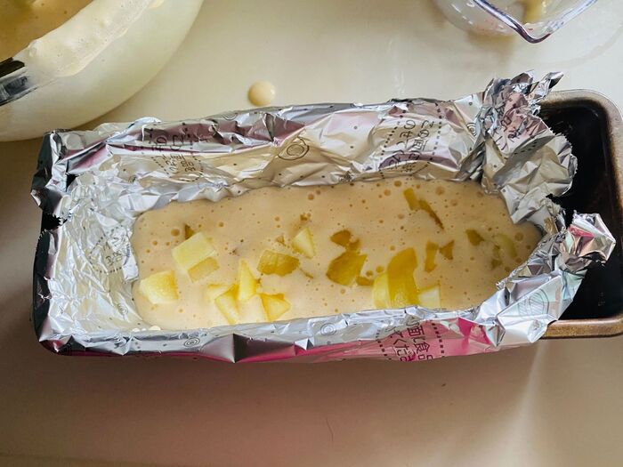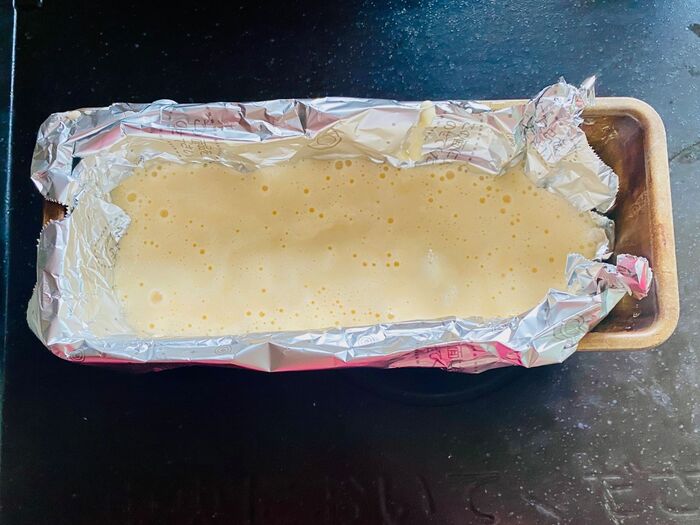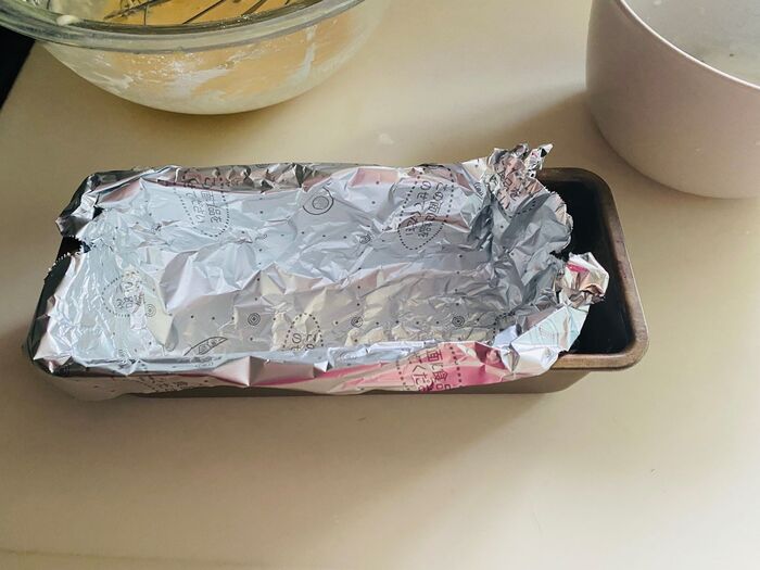⑤パウンドケーキ型にくっつかないアルミシートをセットします。