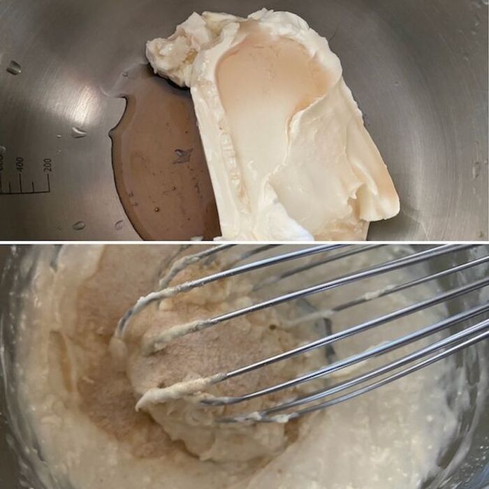 室温に戻しておいたクリームチーズとリコッタチーズに