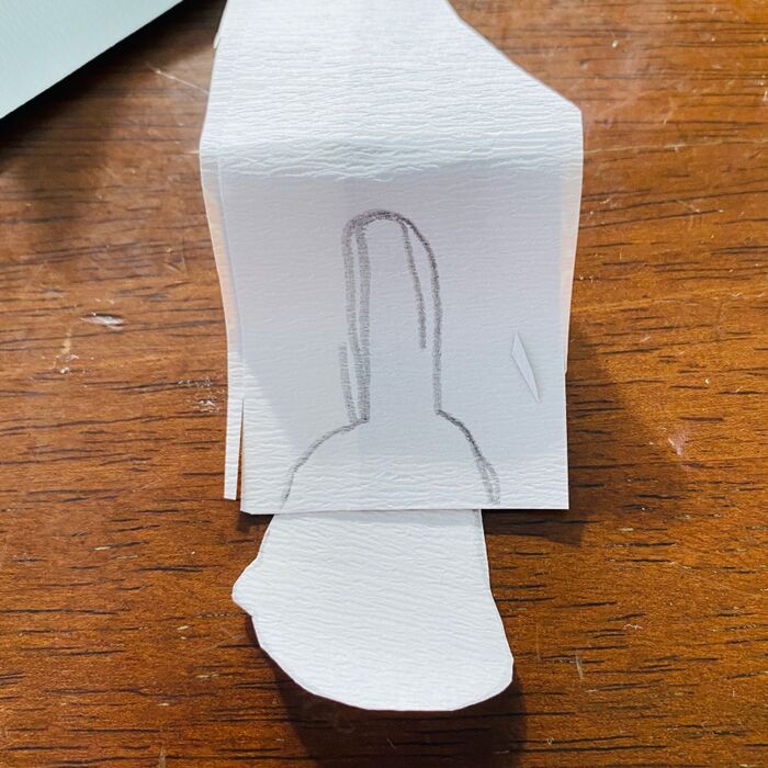 裏側の白いところに鉛筆で顔と耳の形を描き、ハサミでカットします。
