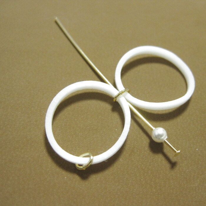 3: Tピンにスワロフスキーを通し、次にレインボールームを繋げているCカンを通します。