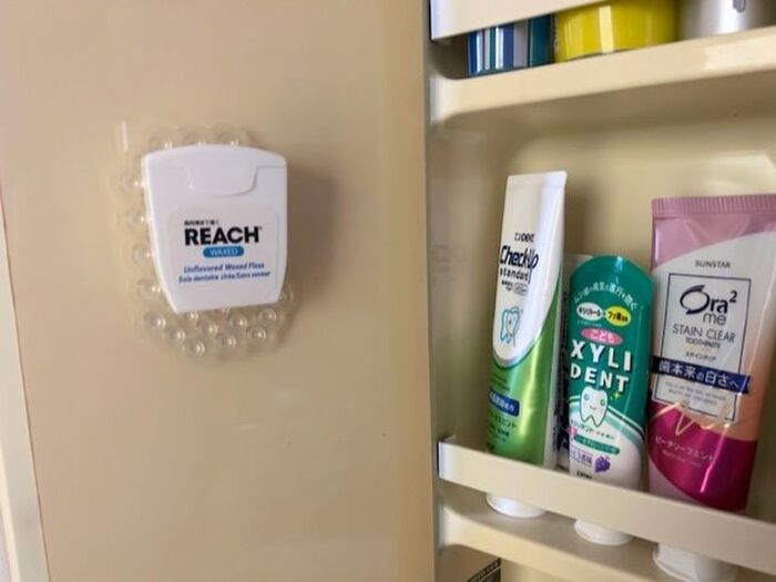 歯磨き粉を取り出すときにノンストレスになり、フロスも特に不便なく取り外し&戻しができるので、快適♪