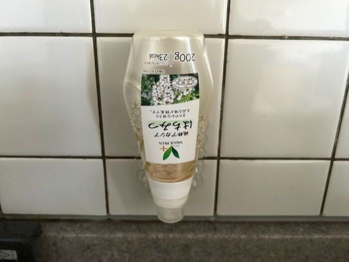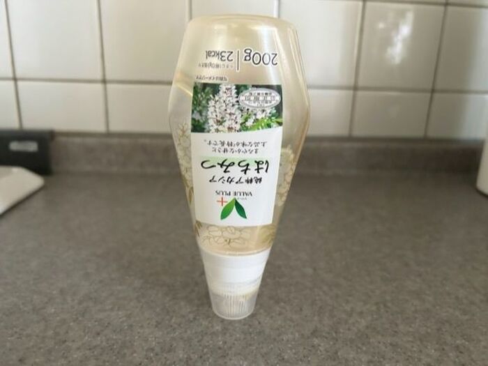 こういったはちみつのボトルは、残り少なくなったときに、逆さにして中身を口の方に集めたりしますよね?