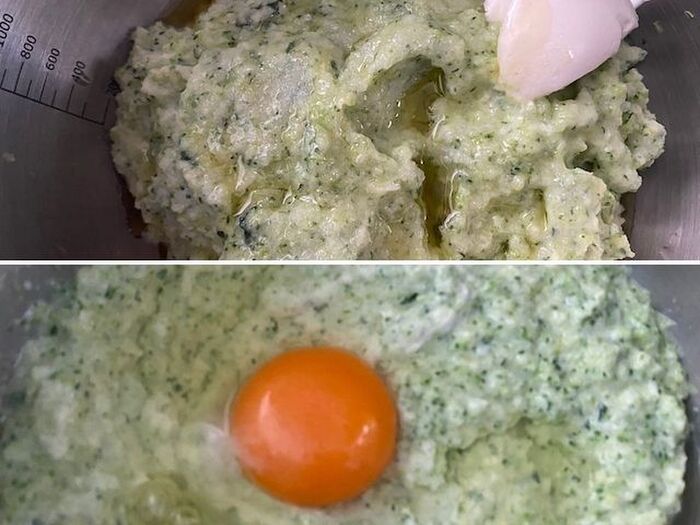同じく水気を切った豆腐とパルミジャーノを加え再び撹拌する。