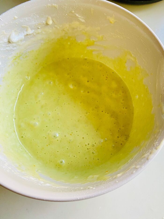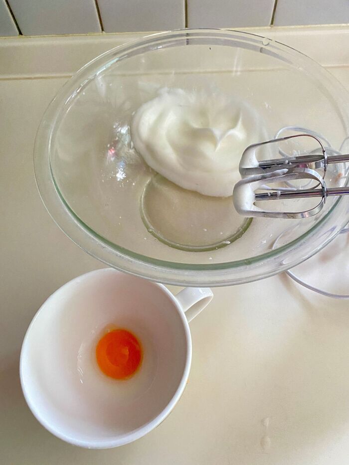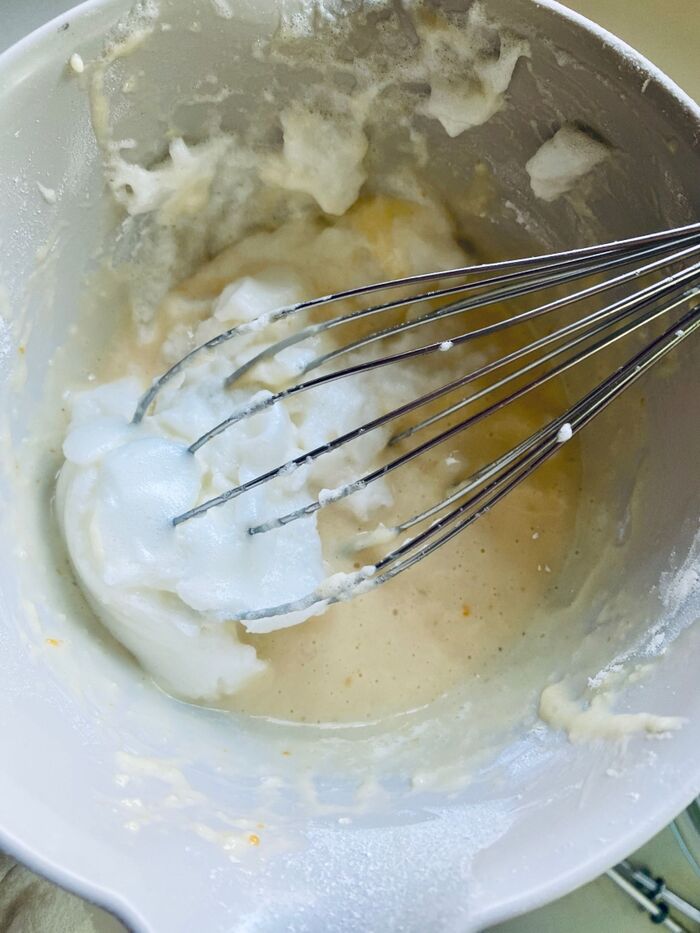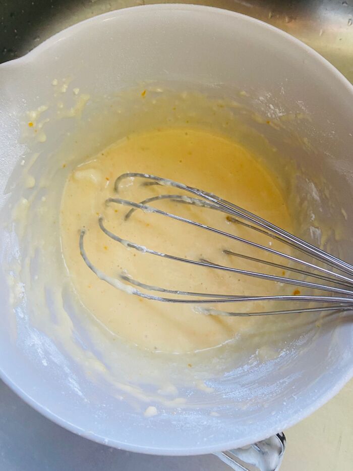 次に、卵黄、砂糖、牛乳を入れよく混ぜます。