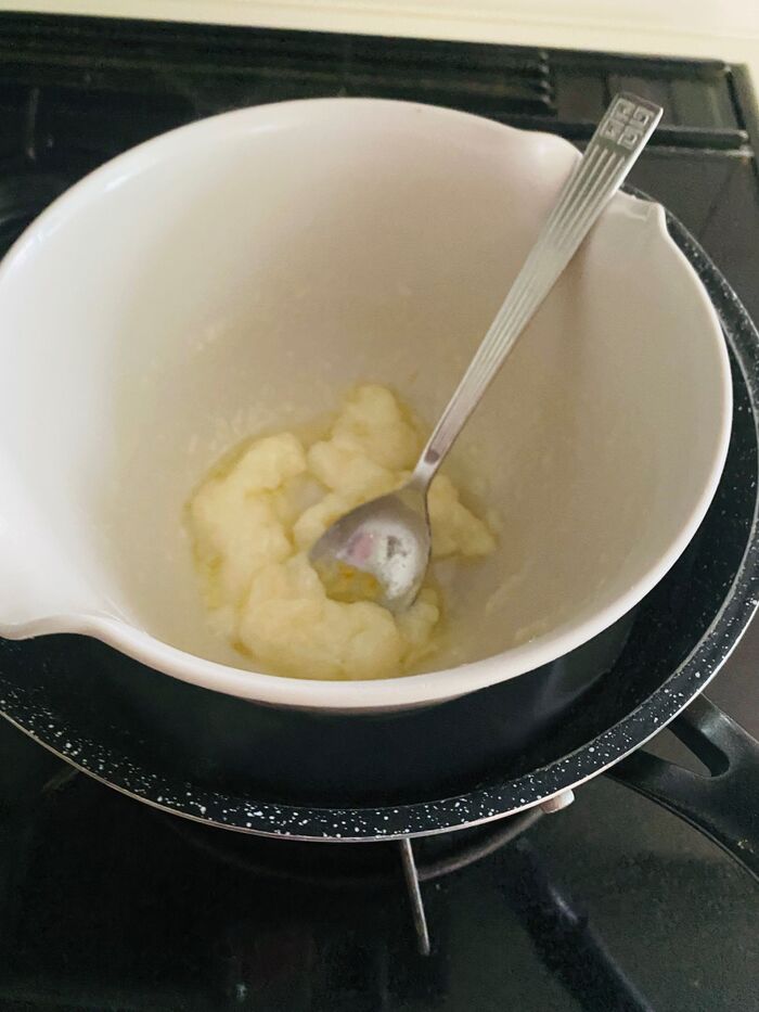 お餅を湯通ししたお湯にボールを乗せて湯煎代わりに使うと良いですよ。