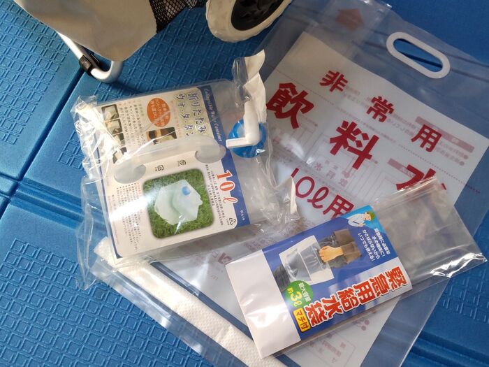 飲料水用の緊急用吸水袋なども、色々なタイプを何種類か入れておきましたよ。