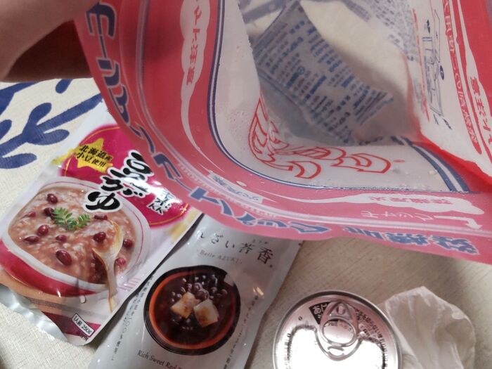 今回は、25分ほど、小豆粥のレトルトと缶詰めとぜんざいのレトルトの3点を温めてみました。