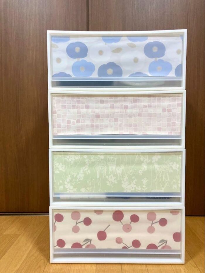 なんでもないシンプルな収納ケースが、かわいい柄のケースに早変わり!