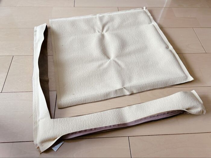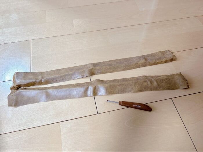 縫い目をほどいて2枚の細長い生地に分けてください。