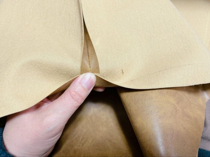 左側と底になる部分はもともとの縫い目をそのまま採用します。