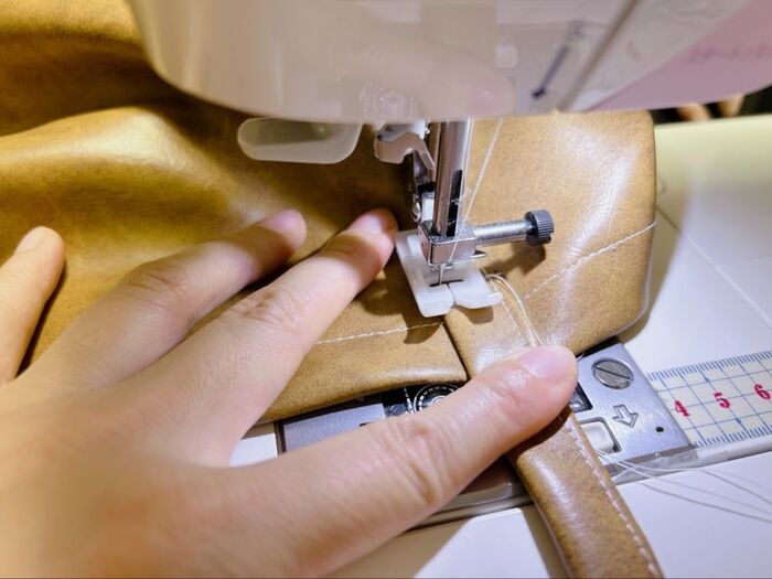 ミシン針で穴が開くので、針目は粗めの設定にてしてください。