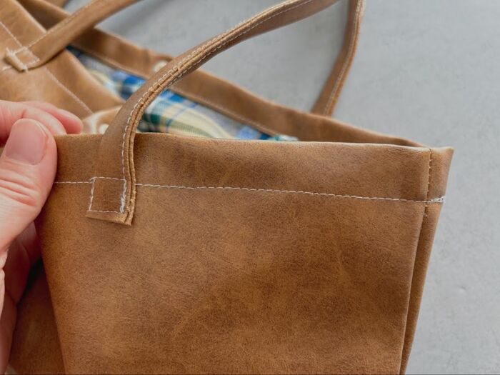 重なっていない方をトートの口を縫うときに挟み込んで一緒に縫います。