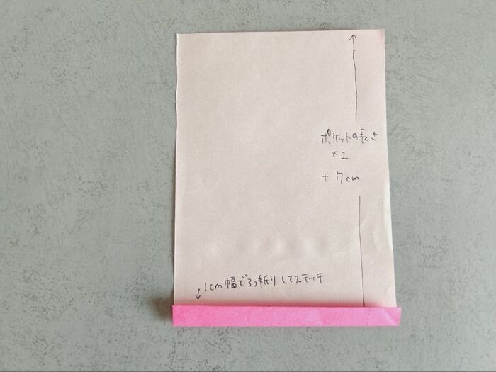 ※持ち手を作るのがめんどくさい人、きれいに縫う自信がない人は市販のひもを使って省略OKです。