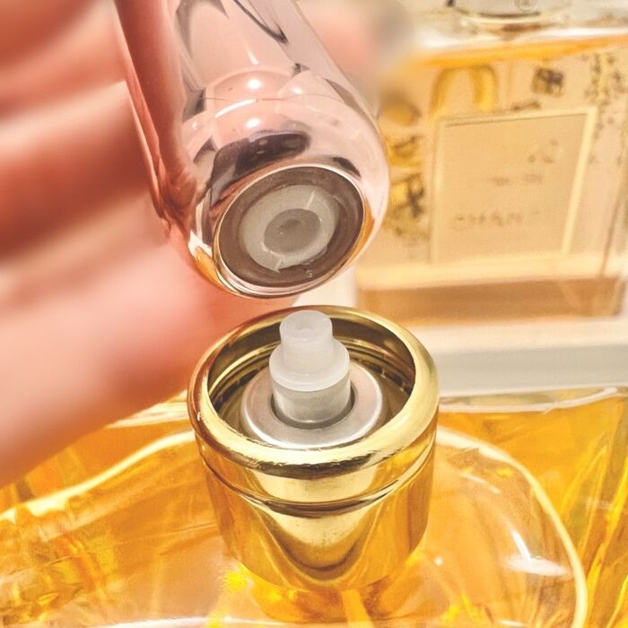 7割程度まで香水を入れたら、そのままスポッと香水ボトルから外して完成!