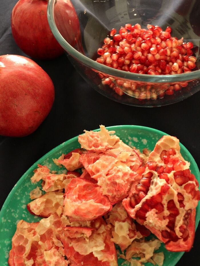 ①ザクロを割って中の実だけを出しボウルに入れる。