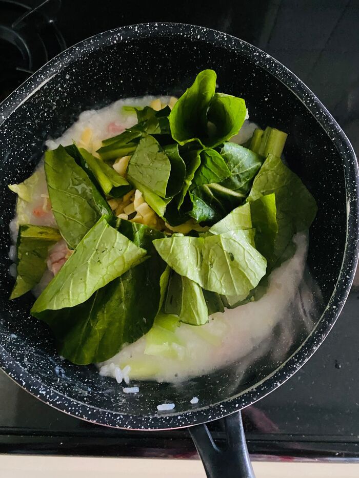 (茎のような硬いところを使う場合は、小松菜の茎を入れる時に一緒に加えて下さい。)