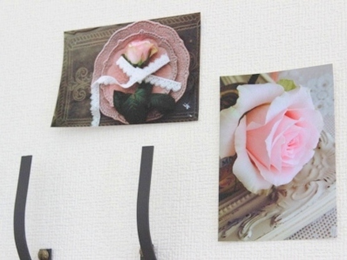 そばには自分で撮ったピンクのバラの写真を貼って、ガーリーな雰囲気を演出♪
