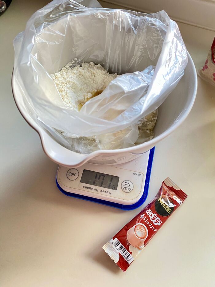 生地を混ぜるとき、よくもみもみすることです。ビニール袋にれて生地を混ぜるので、洗い物が少なくて済みますよ。簡単で、いつでも気軽に作れますよ。是非、おすすめです。