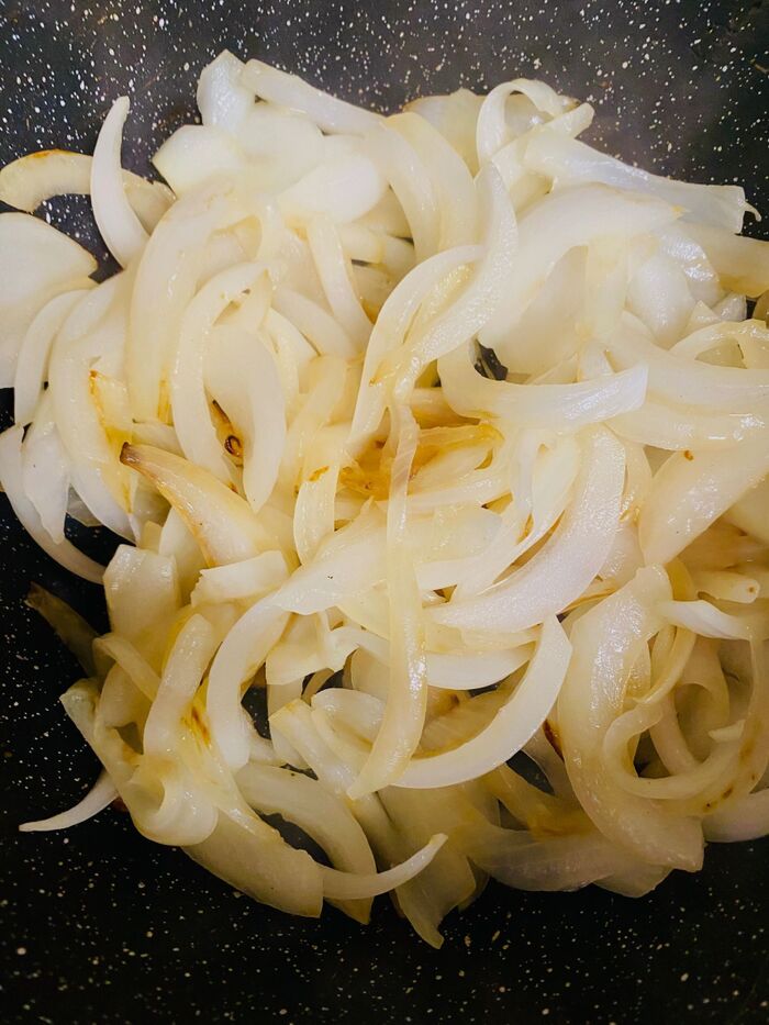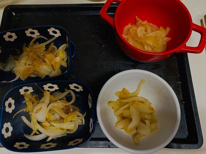 新玉ねぎを早く飴色に炒める方法は、レンチンしてから炒めると早く飴色になりますよ。