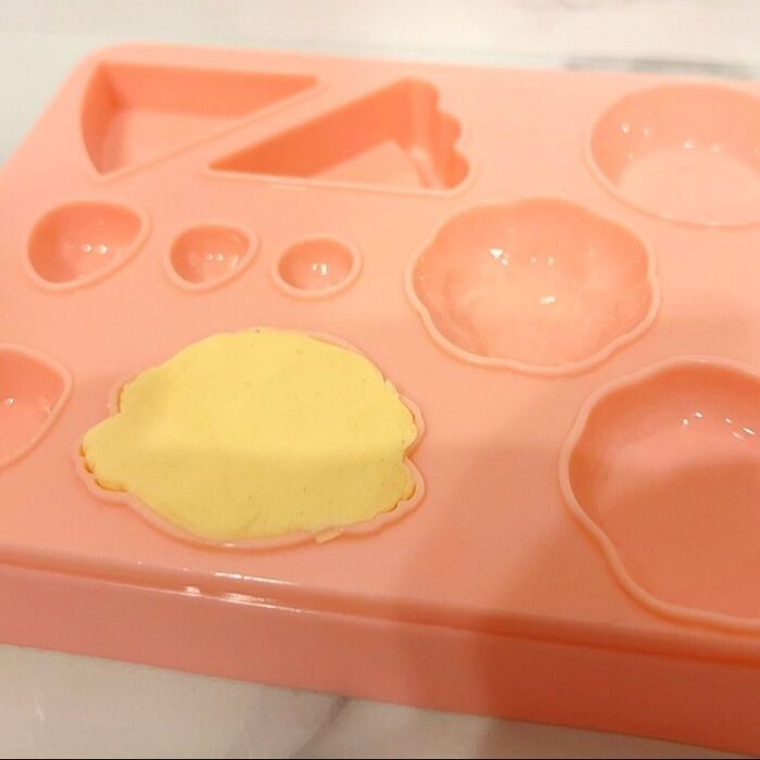こちらの「お菓子の抜きかた」にこむぎねんどを詰めて、取り外すのみ。